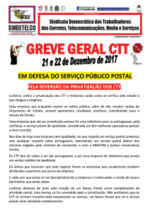 GREVE GERAL CTT – 21 e 22 Dezembro 2017