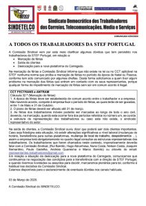 Continuamos dispostos para analisar medidas pontuais MAS SEMPRE NO QUADRO DO RESPEITO DO ACORDO DE EMPRESA DOS CTT.