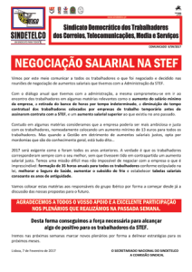 O SINDETELCO reuniu hoje, dia 4 de Abril, com a Empresa, naquela que foi a primeira reunião de negociação da Tabela Salarial para o ano de 2017.