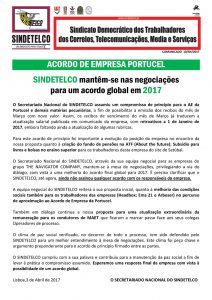 O SINDETELCO considera que esta proposta da empresa é irrealista, todavia estamos em crer que, com o desenrolar do processo negocial, haja uma aproximação entre as propostas do SINDETELCO e da Empresa.