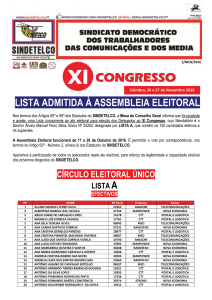 CONVOCATÓRIA Ao abrigo do n.º 1 do Artigo 24.º dos Estatutos do SINDETELCO, o Conselho Geral reunido em Lisboa, no dia 7 de Novembro de 2015, deliberou convocar o XI Congresso do SINDETELCO – Sindicato Democrático dos Trabalhadores das Comunicações e dos Média, para os próximos dias 26 e 27 de Novembro de 2016, com …